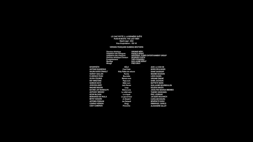 Puss in Boots discovers that his passion for adventure has taken its toll: He has burned through eight of his nine lives, leaving him with only one life left. Puss sets out on an epic journey to find the mythical Last Wish and restore his nine lives.