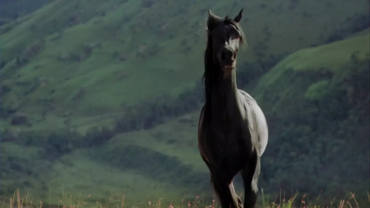 A young girl befriends a wild black stallion.