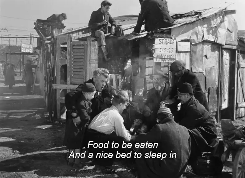 Once upon a time a wise and kind old woman discovers a baby in her cabbage patch. She brings up the child and, when she dies, the boy, Totò, enters an orphanage. Totò leaves the orphanage a happy young man, and looks for work in post-war Milan. He ends up with the homeless and organizes them to build a shanty town in a vacant lot. But when greedy developers threaten the community’s land, Totò will need all the help he can get in order to find an impossible way out.