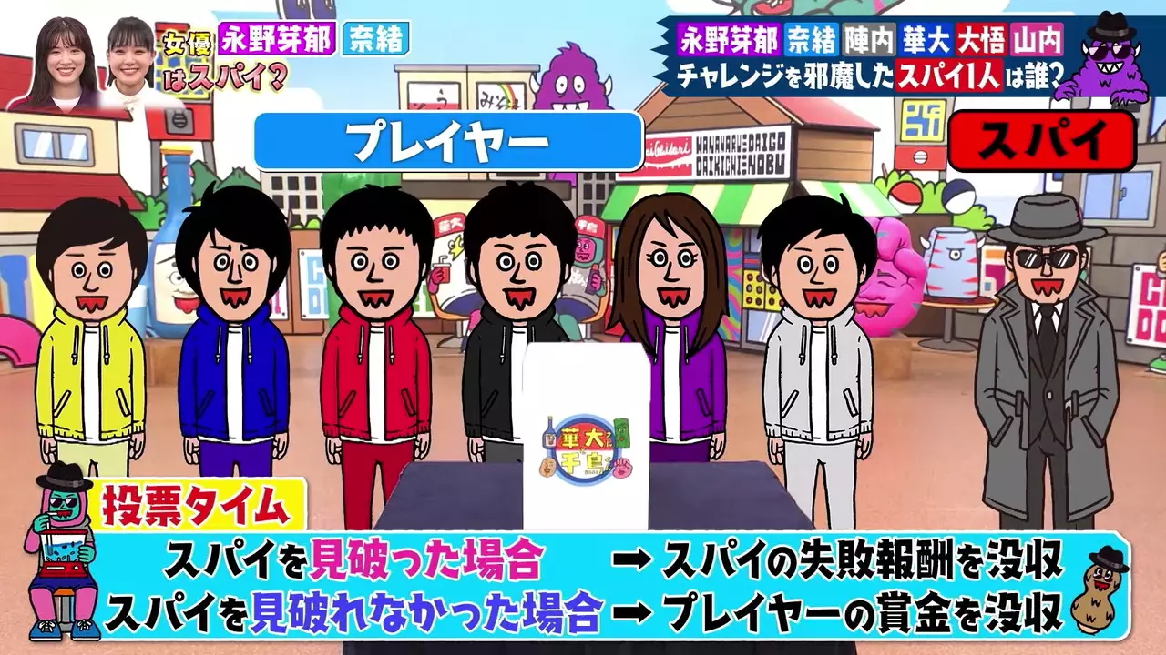Comedy duos Chidori and Hakata Hanamaru Daikichi pair up to host their variety show, goofing around with a rotating series of hilarious guests.