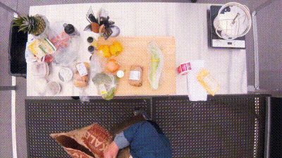 Alex Guarnaschelli hosts as chefs square off in a competitive pop-up kitchen outside a grocery store. To make their challenge dishes, the chefs must size up shoppers as they exit the store and negotiate for their grocery bags.
