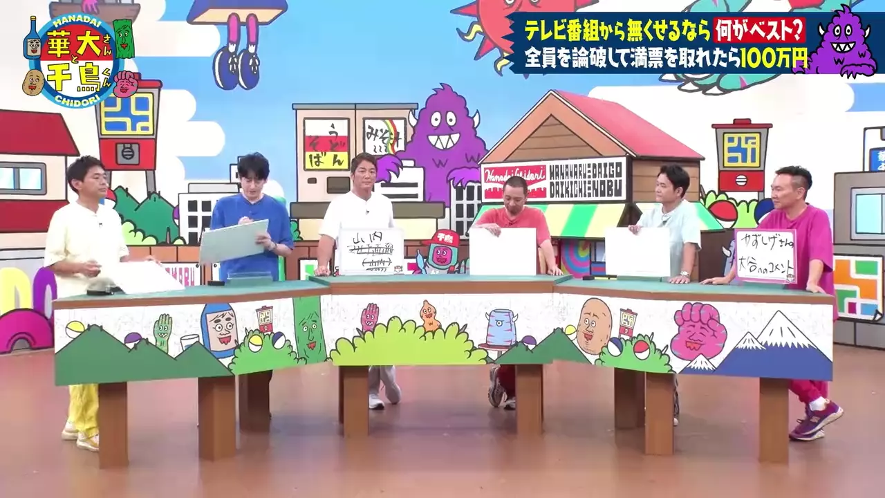 Comedy duos Chidori and Hakata Hanamaru Daikichi pair up to host their variety show, goofing around with a rotating series of hilarious guests.