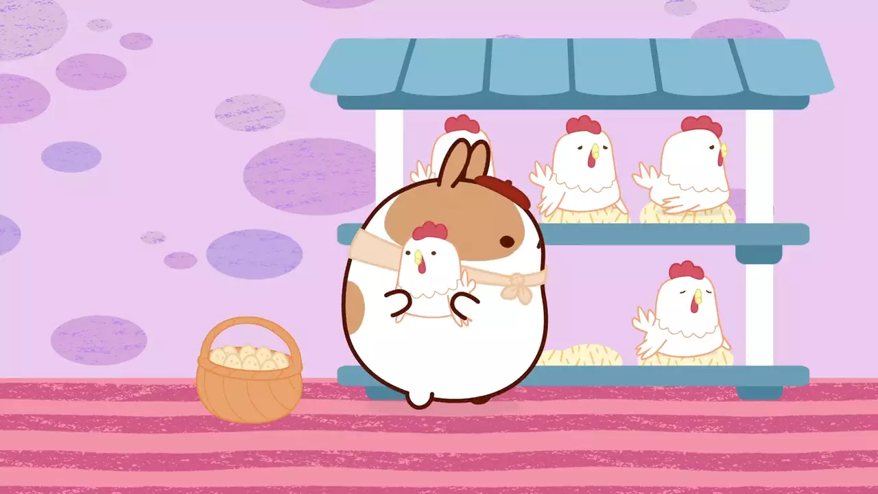 Molang is an affectionate and humorous perspective on the relationship between an eccentric, joyful and enthusiastic rabbit, and a shy, discreet and emotional little chick. Despite their many differences, these two enjoy a unique friendship. They have great times together ranging from the mundane to the extraordinary. Whether they're flying to the moon or merely watering the vegetable patch, Molang and Piu Piu experience unexpected, even unsettling situations. Tricky incidents and misunderstandings are soon transformed into opportunities for fun moments and humor, which Molang's friends are happy to come and share in.