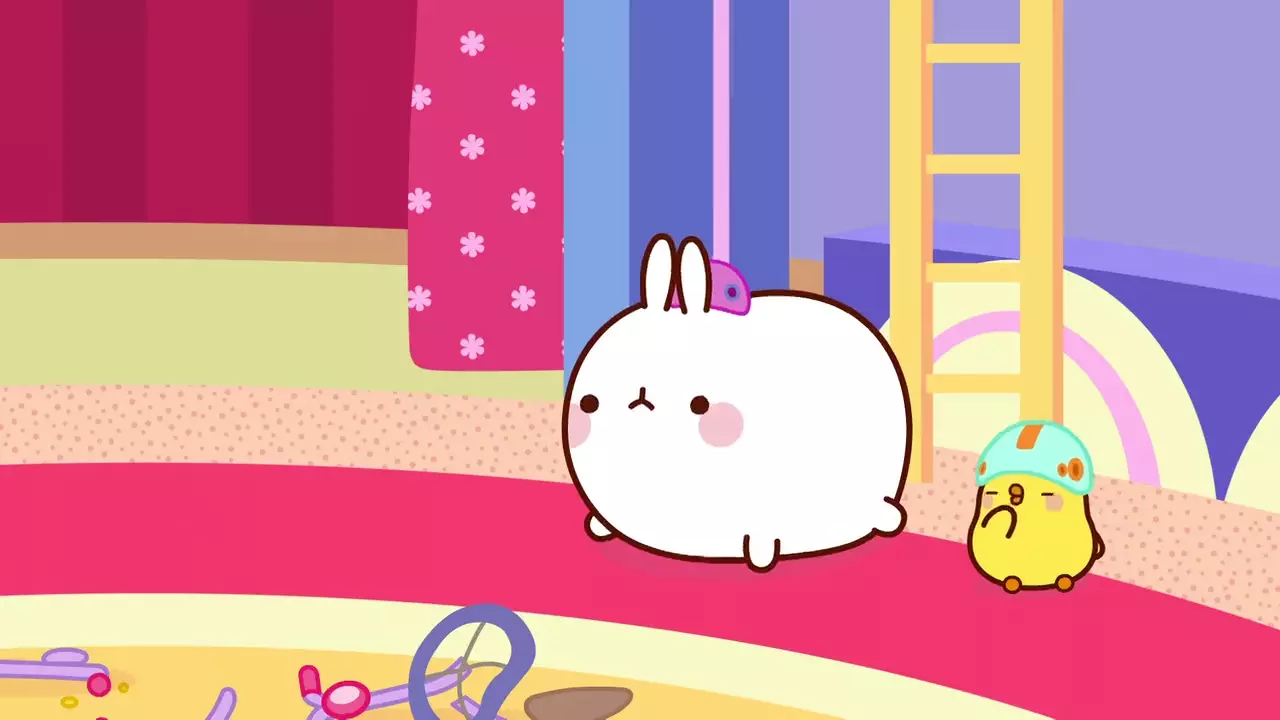 Molang is an affectionate and humorous perspective on the relationship between an eccentric, joyful and enthusiastic rabbit, and a shy, discreet and emotional little chick. Despite their many differences, these two enjoy a unique friendship. They have great times together ranging from the mundane to the extraordinary. Whether they're flying to the moon or merely watering the vegetable patch, Molang and Piu Piu experience unexpected, even unsettling situations. Tricky incidents and misunderstandings are soon transformed into opportunities for fun moments and humor, which Molang's friends are happy to come and share in.