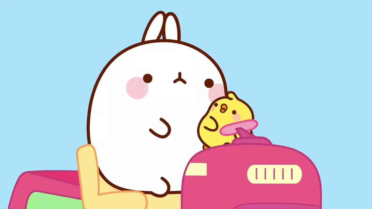 Molang is an affectionate and humorous perspective on the relationship between an eccentric, joyful and enthusiastic rabbit, and a shy, discreet and emotional little chick. Despite their many differences, these two enjoy a unique friendship. They have great times together ranging from the mundane to the extraordinary. Whether they're flying to the moon or merely watering the vegetable patch, Molang and Piu Piu experience unexpected, even unsettling situations. Tricky incidents and misunderstandings are soon transformed into opportunities for fun moments and humor, which Molang's friends are happy to come and share in.