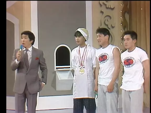 Masquerade (Kasou Taishou) is a semi-annual show on NTV in which various amateur groups perform short skits, which are rated by a panel of judges. Especially in recent years, many of the skits have revolved around clever methods of "faking" cinematic special effects on a live stage. The show is hosted by Kinichi Hagimoto and Katori Shingo. Worldwide, the most famous of these skits, and among the most successful at "fake special effects" was a skit which is widely known as "Matrix ping pong".