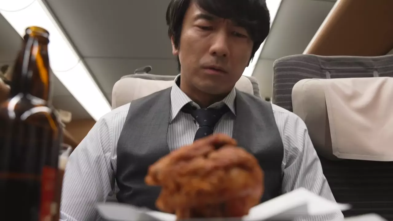 Susumu Takamiya (Hidekazu Mashima) is a salary man. He who works in audit division of an insurance company. His job has him traveling all over the country on one-day business trips via the Shinkansen train. When he visits an area on his business trips, he likes to find delicious food nearby and gets it to go. On his return, via the Shinkansen train, he eats the meals ..
