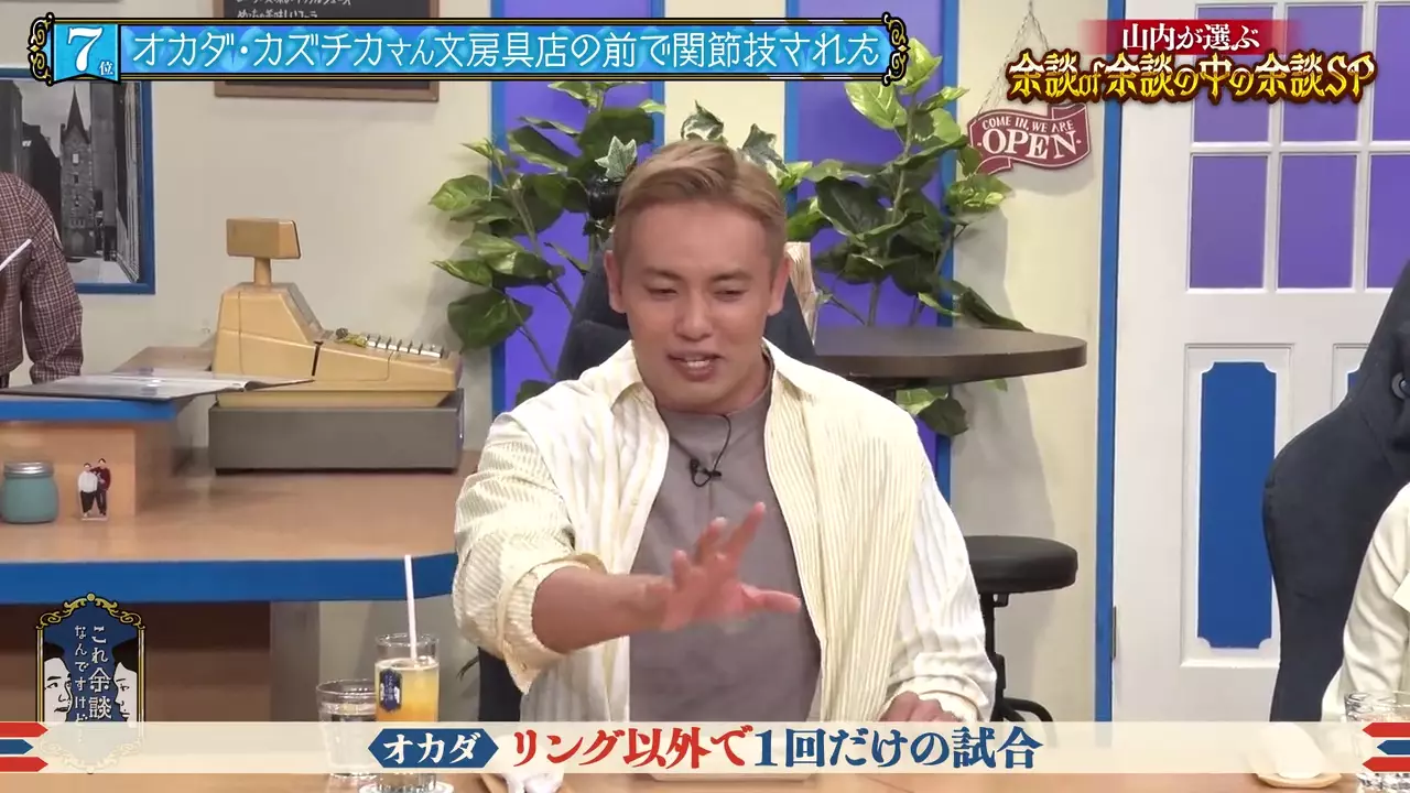 Comedy duo Kamaitachi discuss random topics with their guests while freely changing the subject in this unrestrained talk show set in a coffee shop.