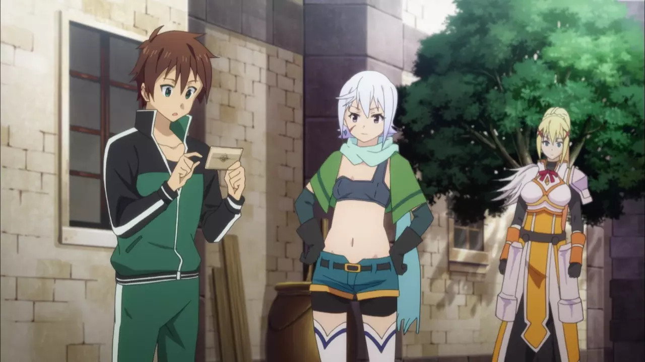 Teenage shut-in Kazuma dies ignominiously and the goddess Aqua offers him reincarnation in a game-like fantasy world. He accepts, taking her along.
