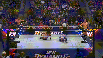Professional male and female wrestlers compete against each other in an AEW Dynamite event in order to emerge victorious.