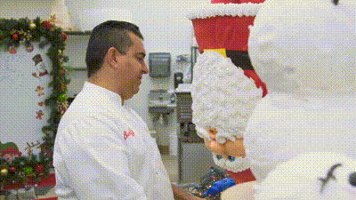 Buddy Valastro faces off against a variety of non-cake artists as Jason Chatfield and Courtney Quin decide which design conquers the Christmas theme.