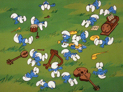 The Smurfs are tiny blue creatures that live in mushroom houses in a peaceful forest. They repeatedly try to outwit Gargamel, an evil sorcerer, his apprentice, Scruple, and his mangy cat, Azrael.