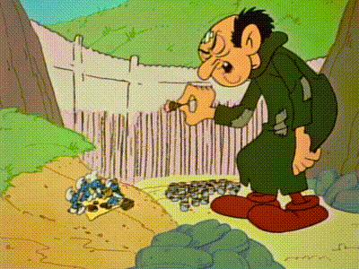 The Smurfs are tiny blue creatures that live in mushroom houses in a peaceful forest. They repeatedly try to outwit Gargamel, an evil sorcerer, his apprentice, Scruple, and his mangy cat, Azrael.