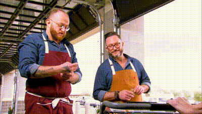 Alex Guarnaschelli hosts as chefs square off in a competitive pop-up kitchen outside a grocery store. To make their challenge dishes, the chefs must size up shoppers as they exit the store and negotiate for their grocery bags.